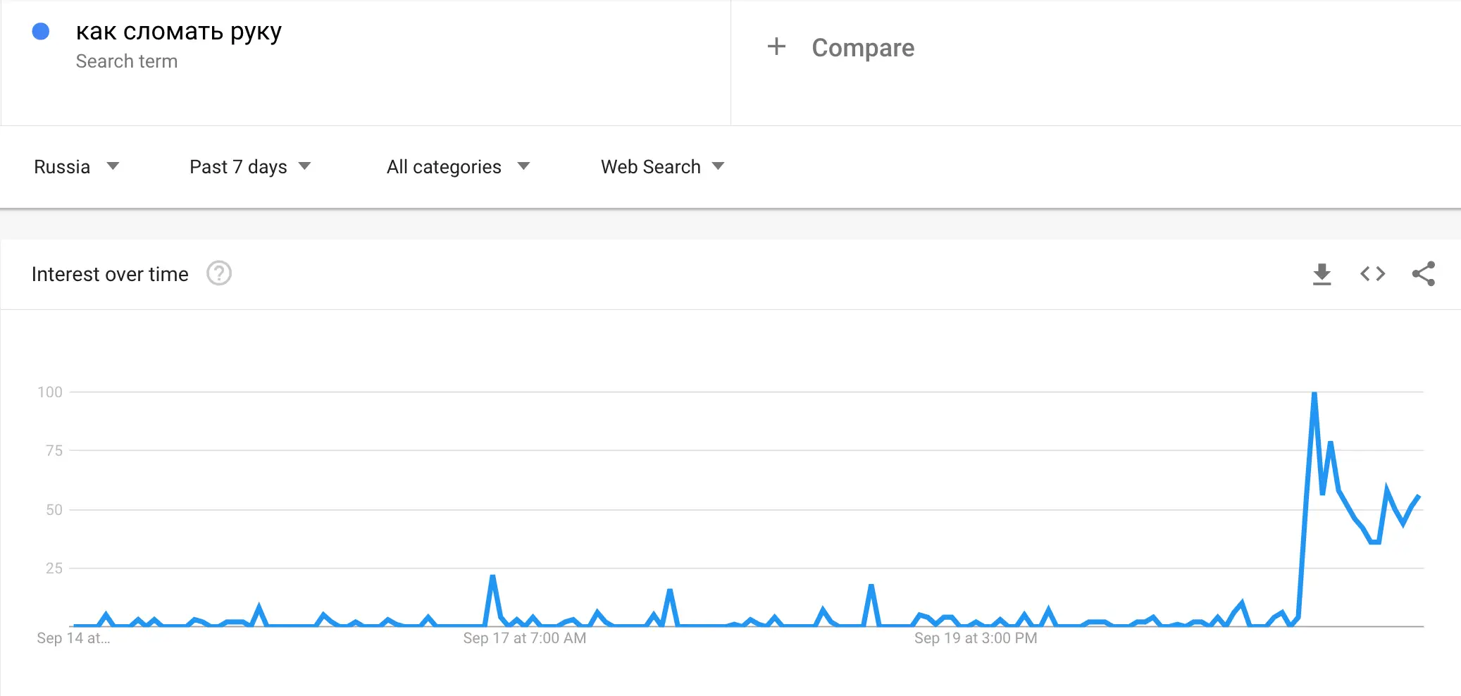 Google search trends for 'как сломать руку', which is loosely translated to 'how to break a hand/arm', have skyrocketed since Putin's address.