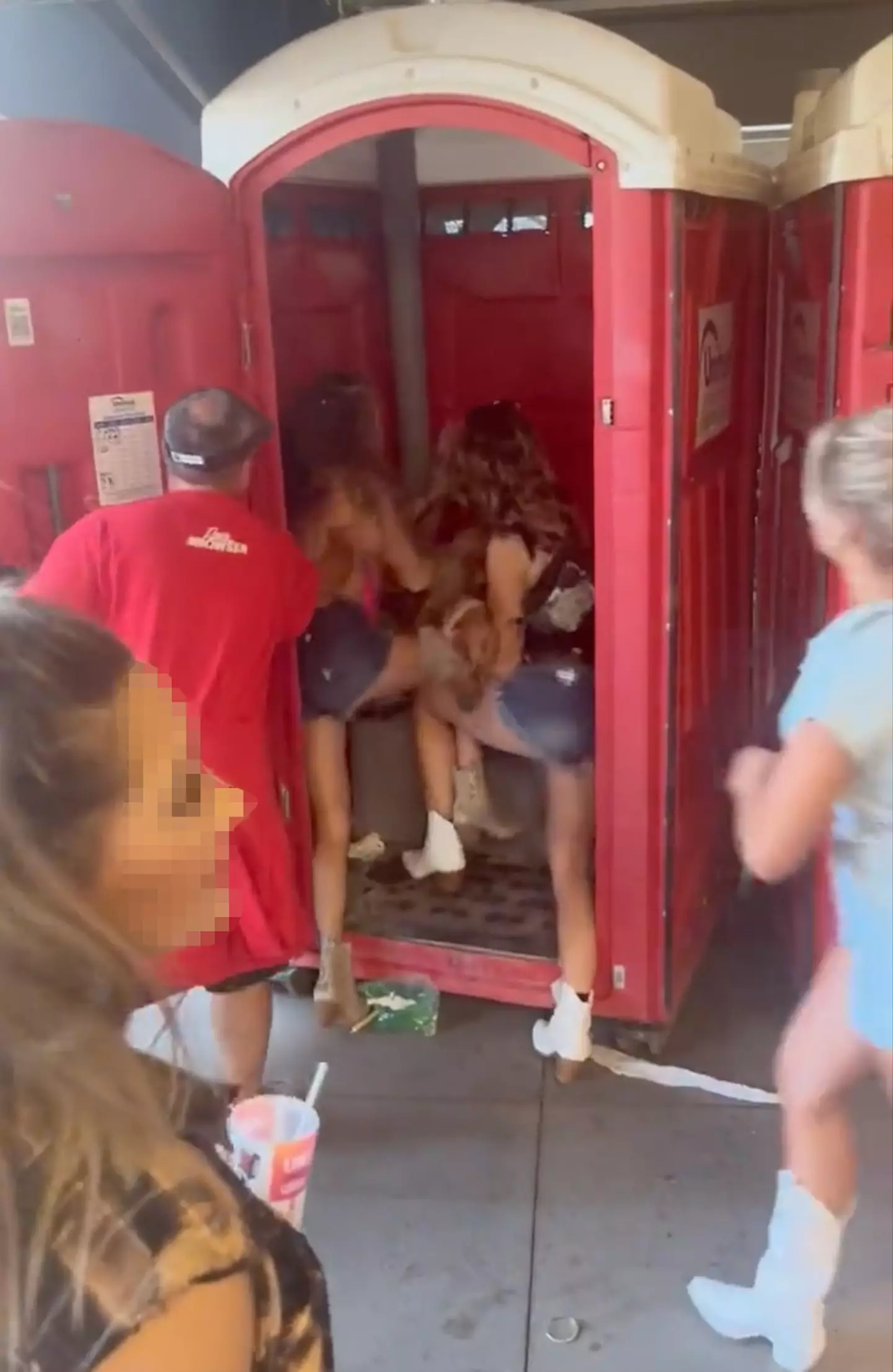 Chaotic scenes unfolded on the night of a Morgan Wallen concert, as a group of women were filmed having an all-out-brawl over a porta potty.