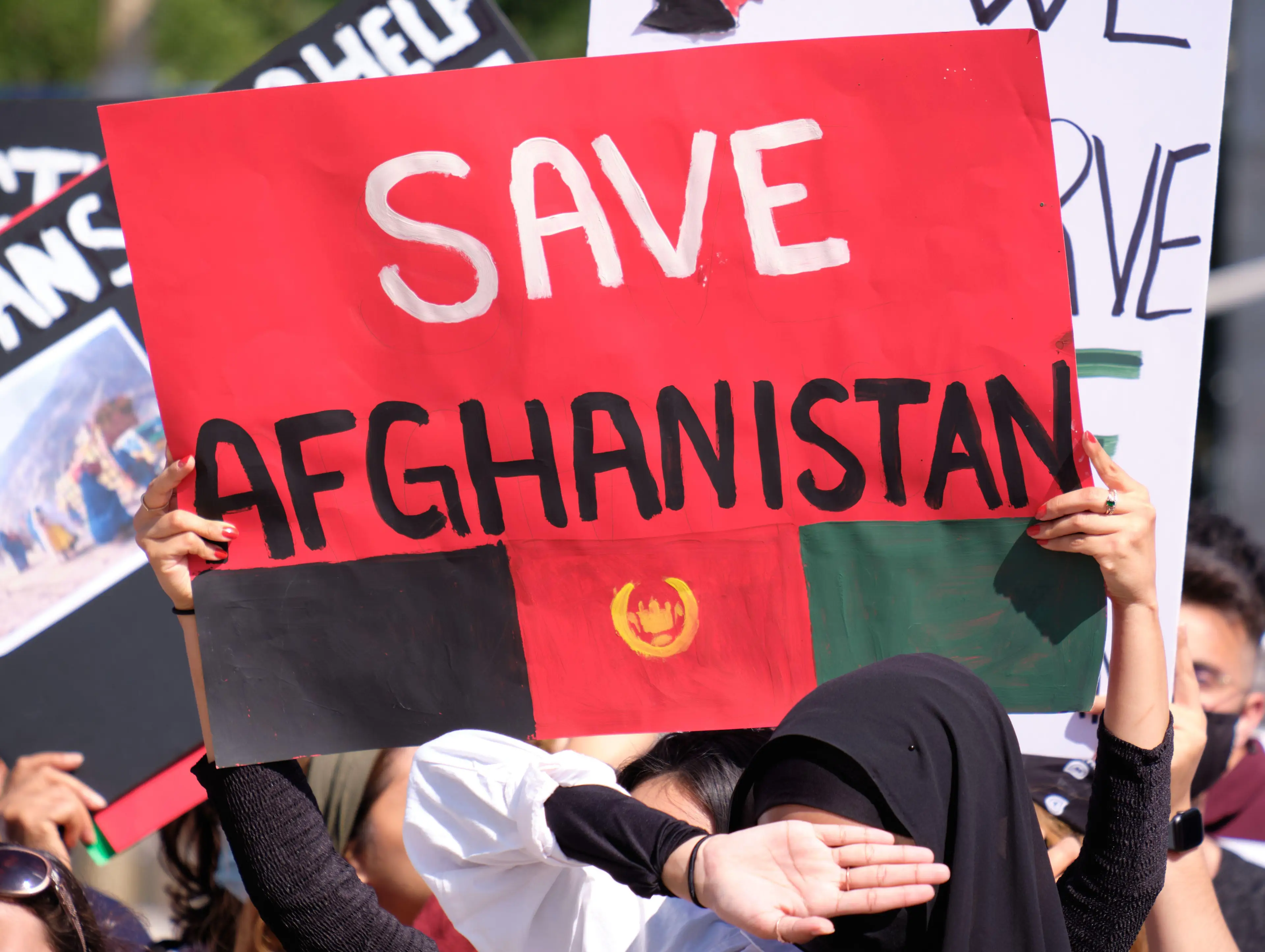 A rally, taking place just a day before the one-year anniversary of the Taliban's return to power, was organised outside of the Education Ministry building in Kabul.