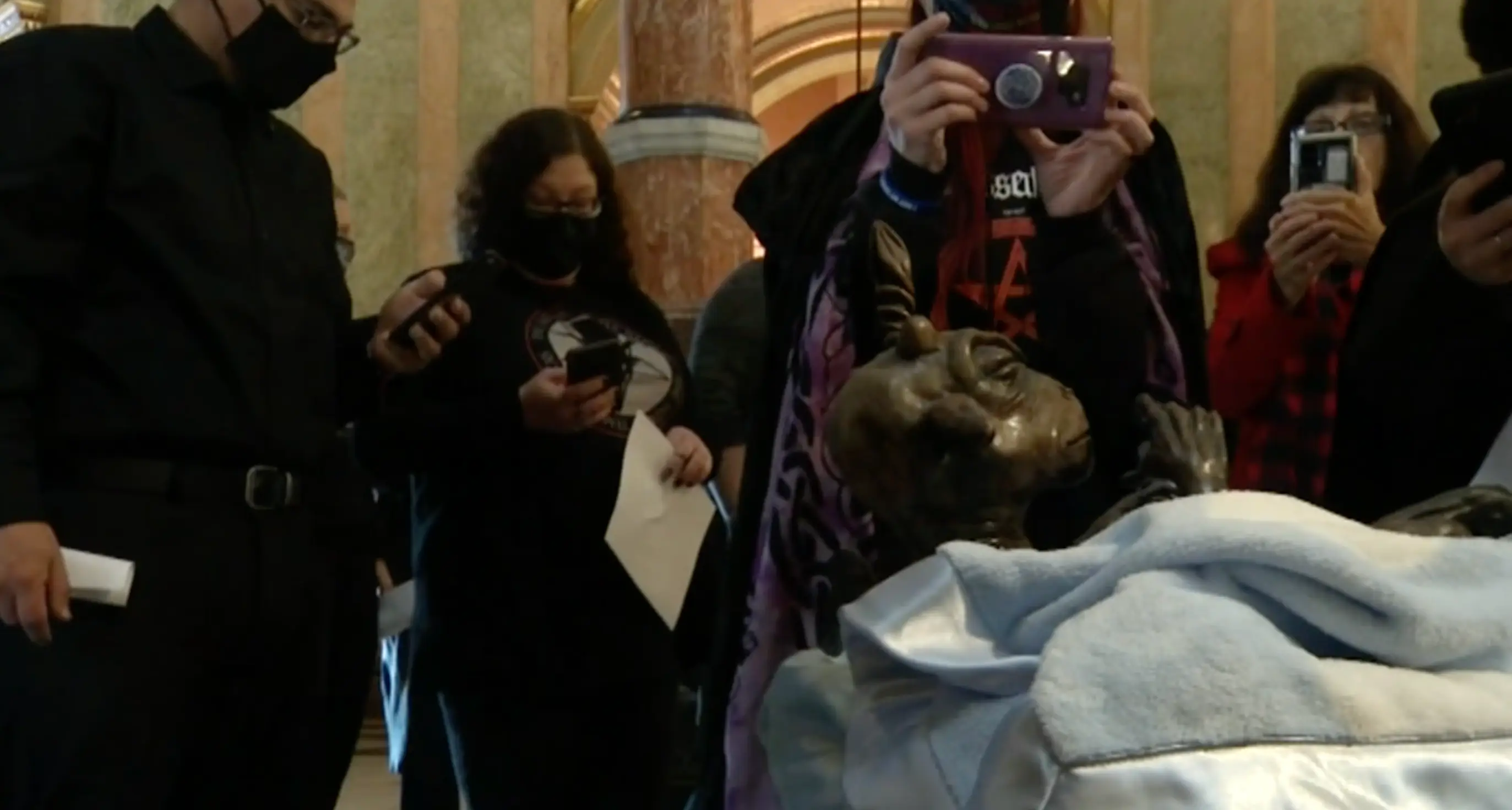 They wrote on Instagram: "Our baby Baphomet traveled from Salem to Springfield, IL to be alongside other religious displays at the State Capitol to represent plurality, unity, compassion and empathy.