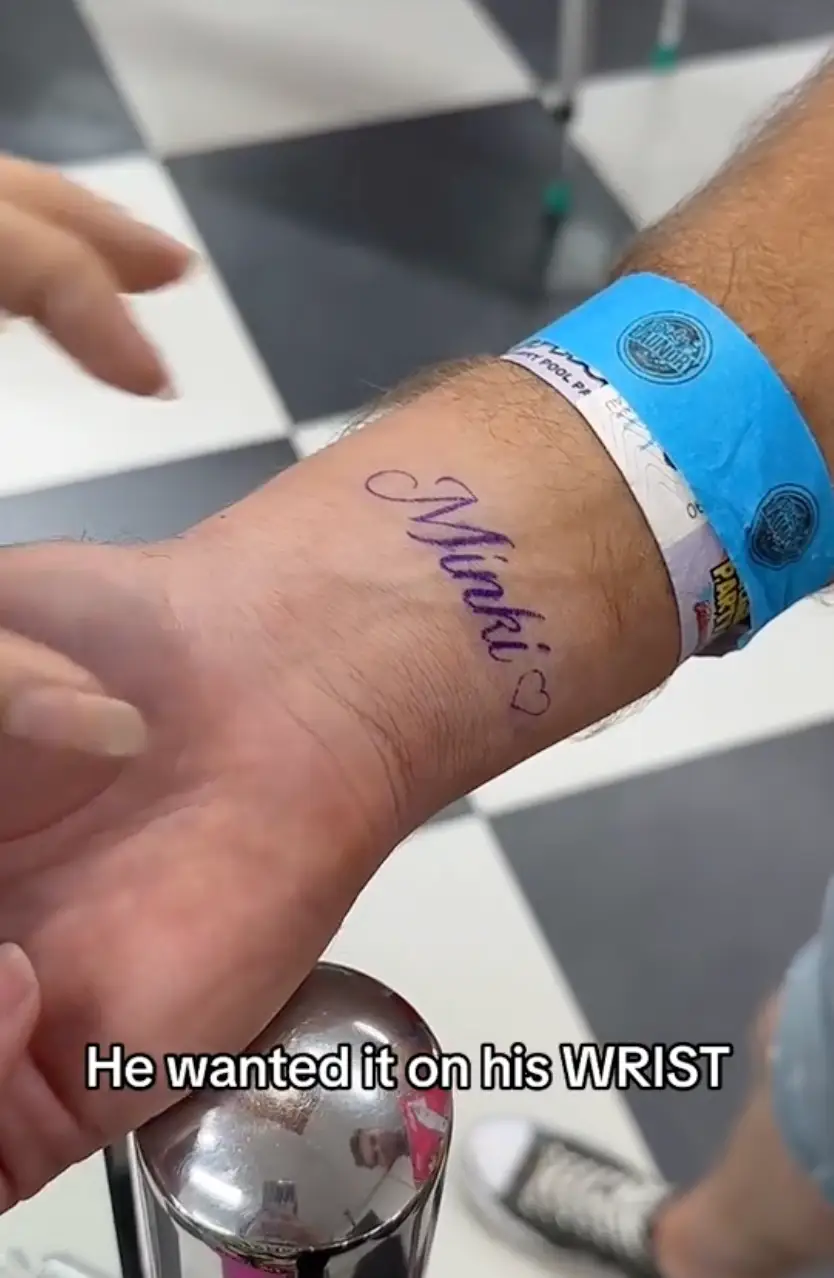 Minna shared with her 16,000 followers that she had never met the name before, but 20 minutes later, he was ready to get inked up to prove his unwavering loyalty.
