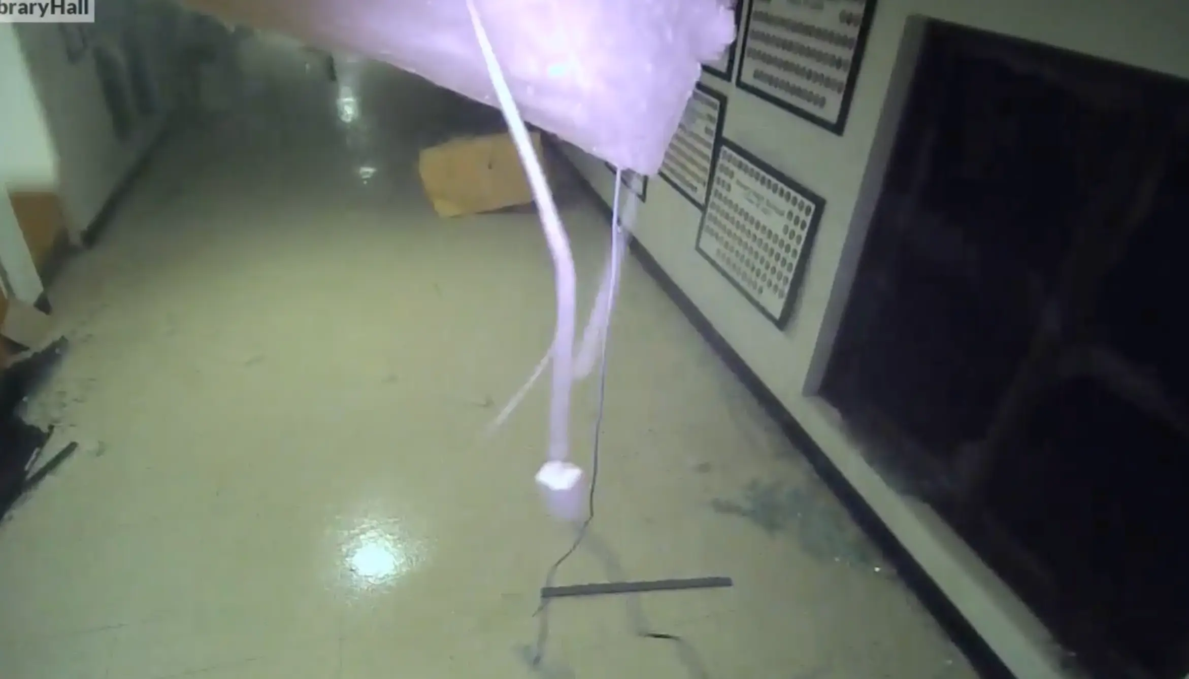In the footage, parts of the ceiling crumble and it isn’t long before the camera is dislodged and falls to the ground.