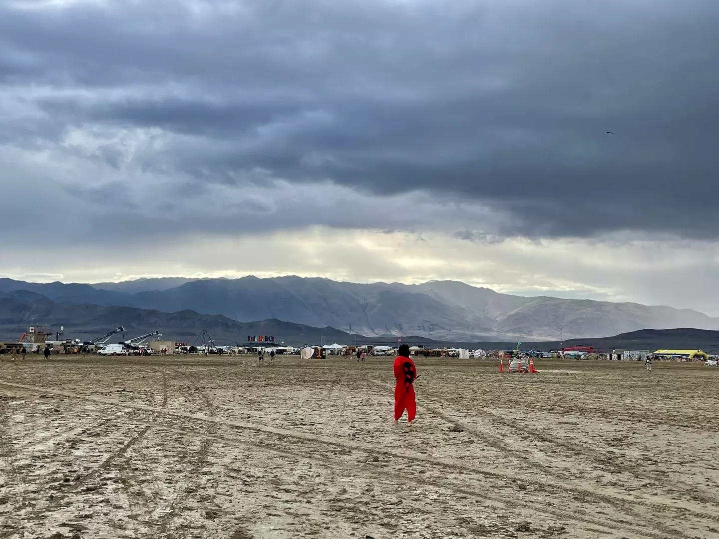 The iconic annual music festival is held in the Black Rock Desert in Nevada and is usually dry and very dusty.