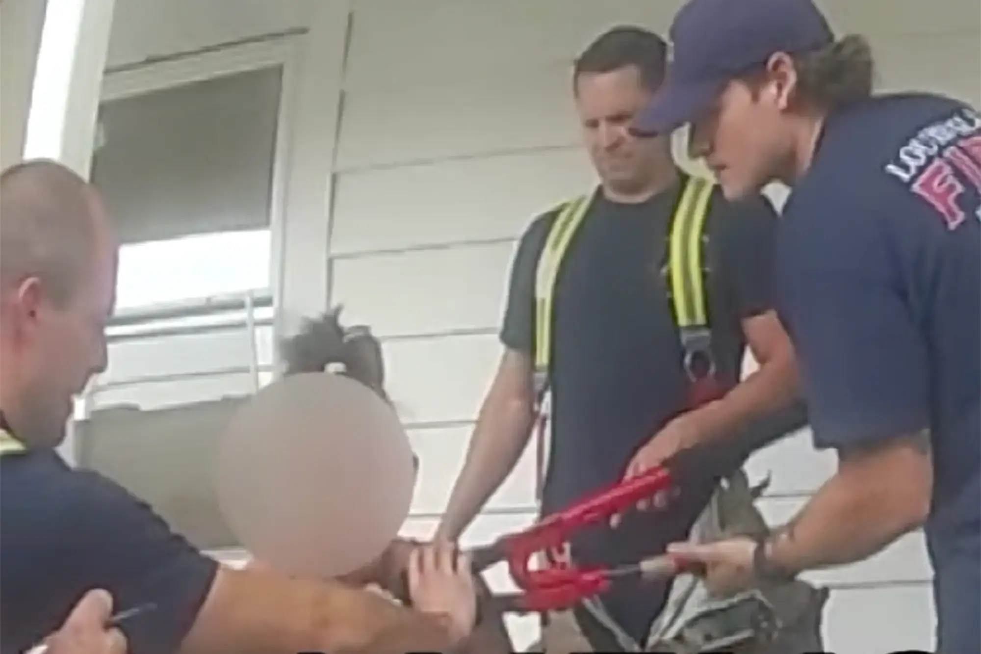 An officer was able to find a hatchet inside the property, which they used to detach the chain from the floor. Firefighters then used bolt cutters to remove the other end from around her neck.