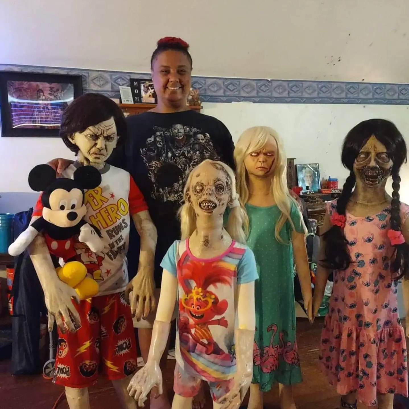 Felicity, from Massachusetts, is also mother to six ‘spiritually alive’ zombie doll children – 10-year-old Rachel, 10-year-olds Holly, Billy and Luna, six-year-old Molly and three-year-old Gremly.