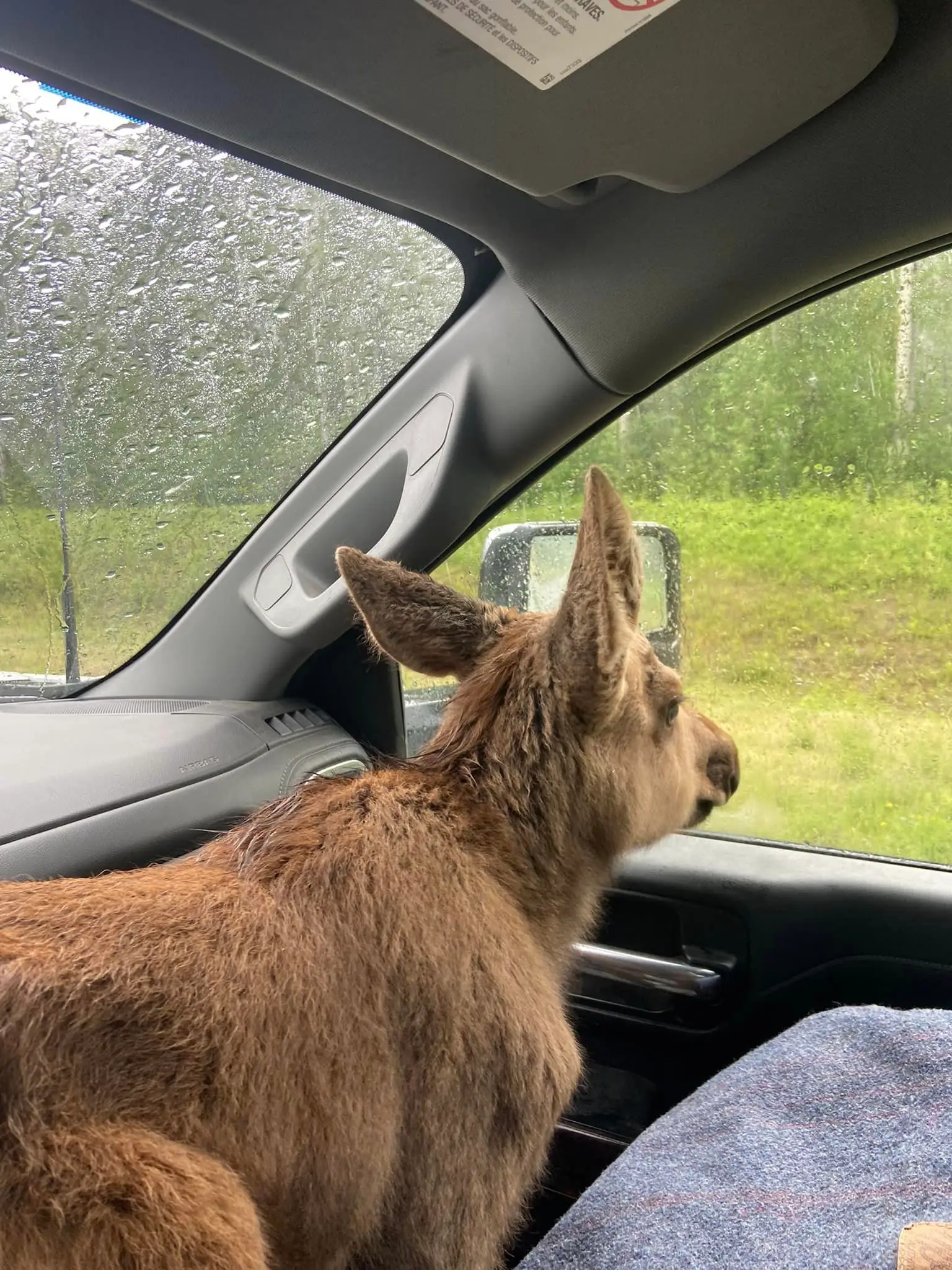 Taking the calf with him for about five-and-a-half hours on the road, he called a conservation service during his journey to find somewhere the baby moose, named Misty, could stay.
