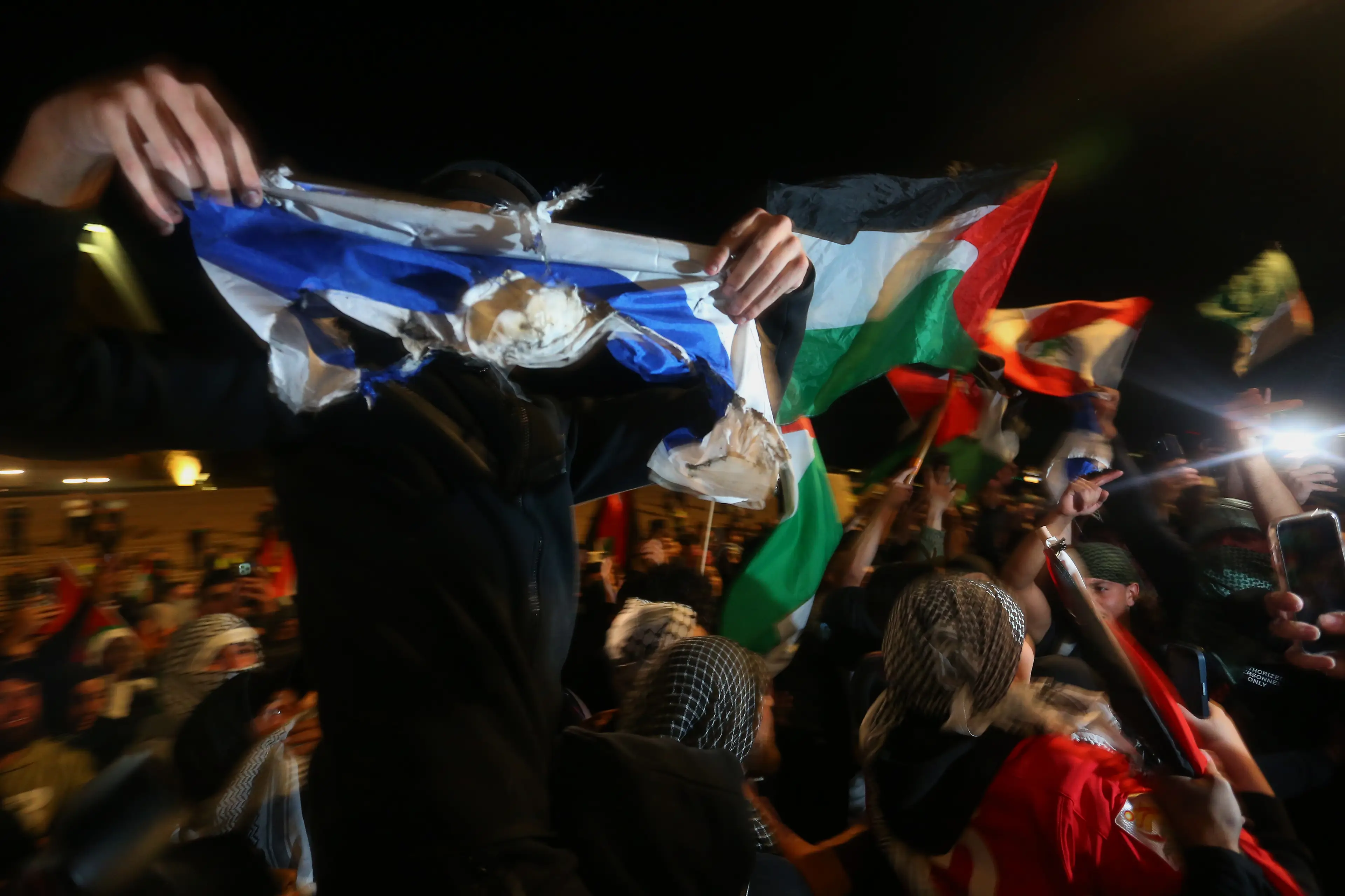 Some demonstrators led horrific chants like 'gas the Jews' and 'f**k Israel', while others burned the Israeli flag.