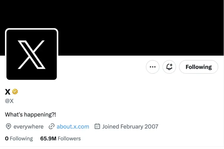 The official Twitter account changed its handle from @Twitter to @X.