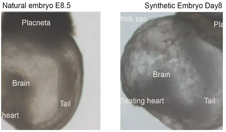 This discovery occurred at the Weizmann Institute in Israel, using stem cells from mice which could make an embryo that has a beating heart, intestinal tract and the early formation of a brain.