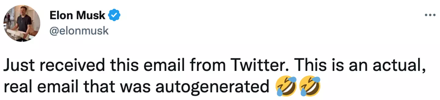 “Just received this email from Twitter,” he shared on Sunday (30 October) along with a screenshot of the email. “This is an actual, real email that was autogenerated."