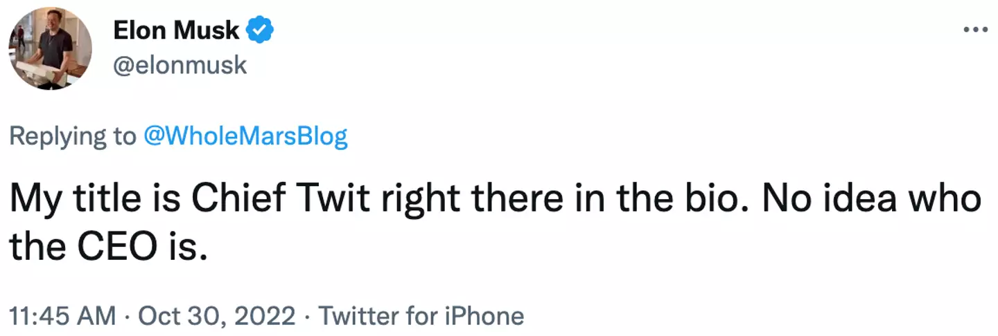When asked by one Twitter user if he plans ‘to be CEO for some time?’, he quipped: “My title is Chief Twit right there in the bio. No idea who the CEO is.”