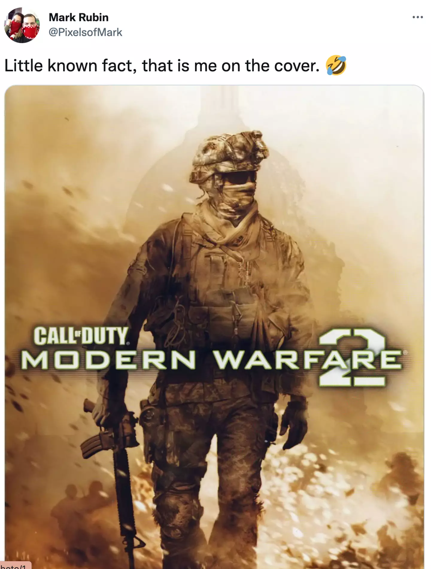 The game developer also confirmed he is the soldier on the cover of Call of Duty 4: Modern Warfare, too.