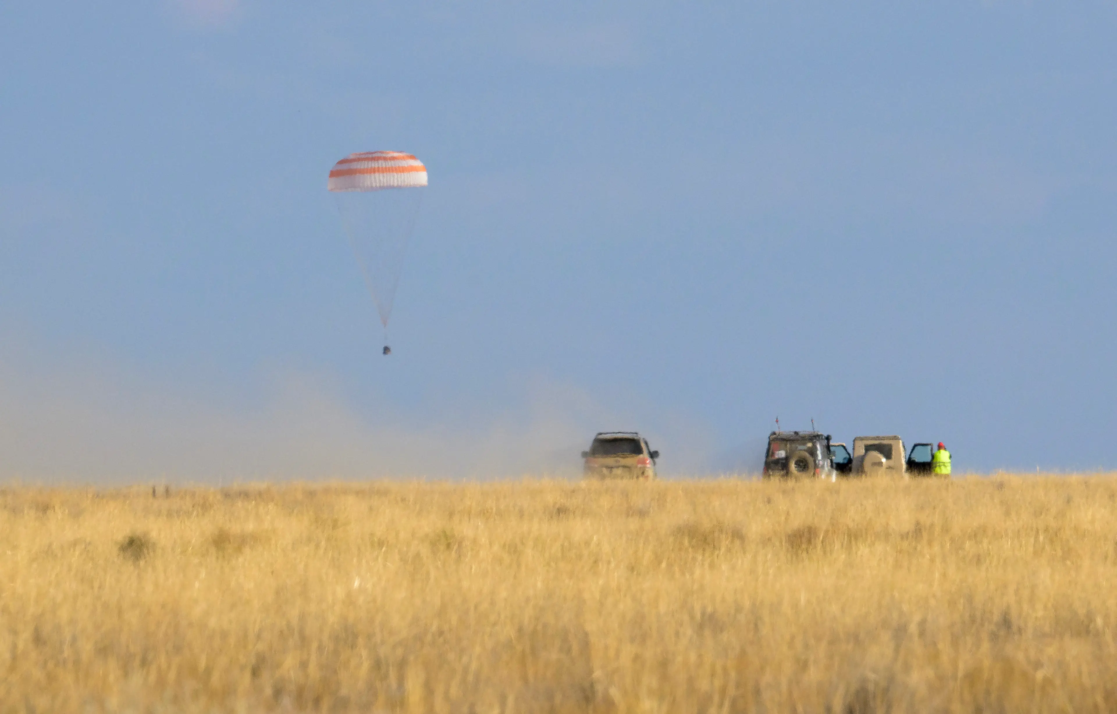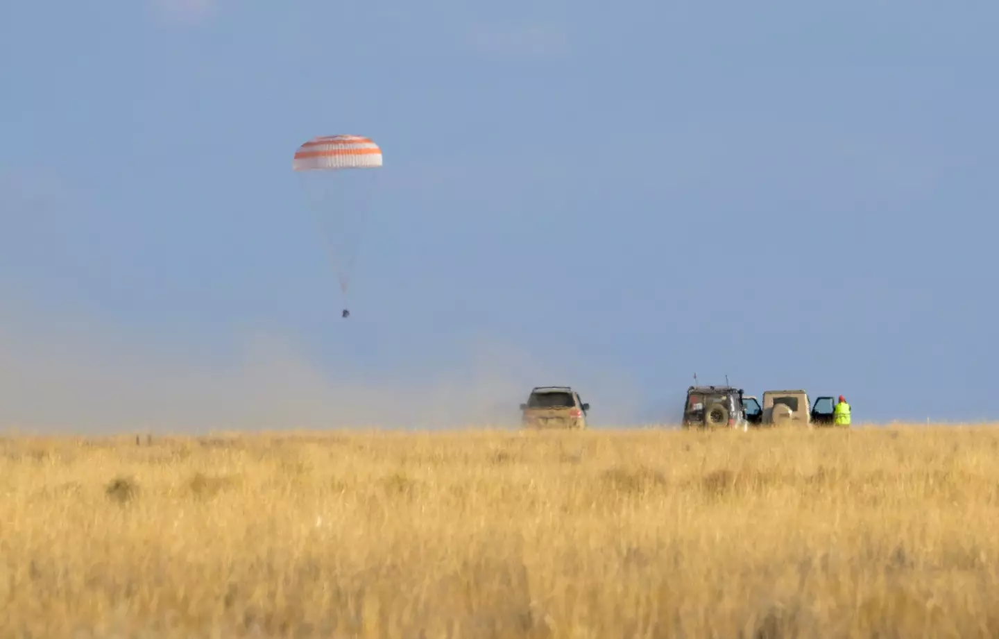 The trio bundled into a small spacecraft called the Soyuz MS-23, which drifted down to Earth and crashed southeast of the remote town of Dzhezkazgan, Kazakhstan.